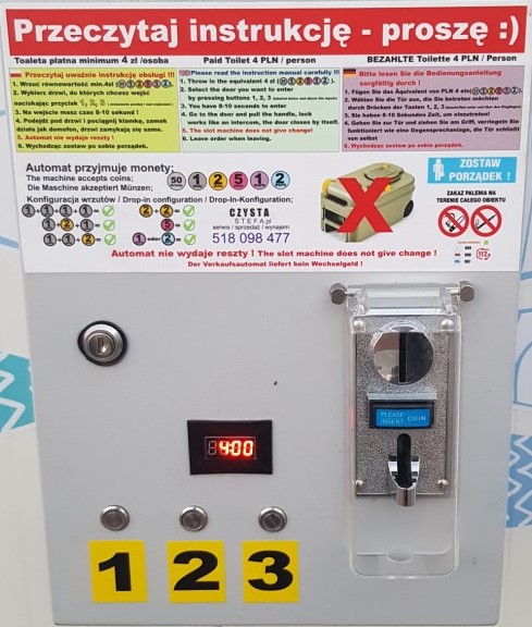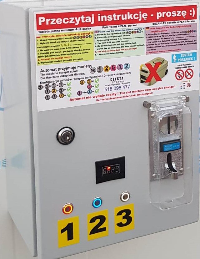 – Możliwość przystosowania automatu do różnych zastosowań (wejście do toalety, płatny prysznic, płatna pralka)